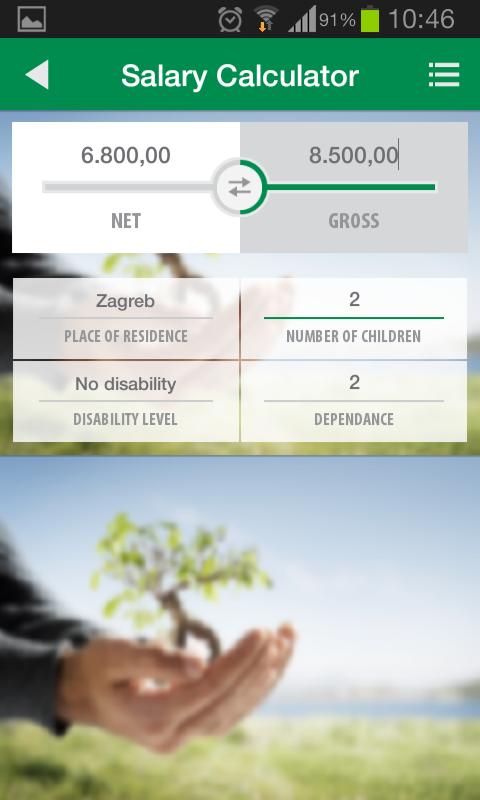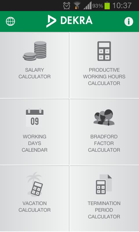 앱은 순/총 급여, 휴가 기간 등을 계산하도록 설계되었습니다.